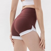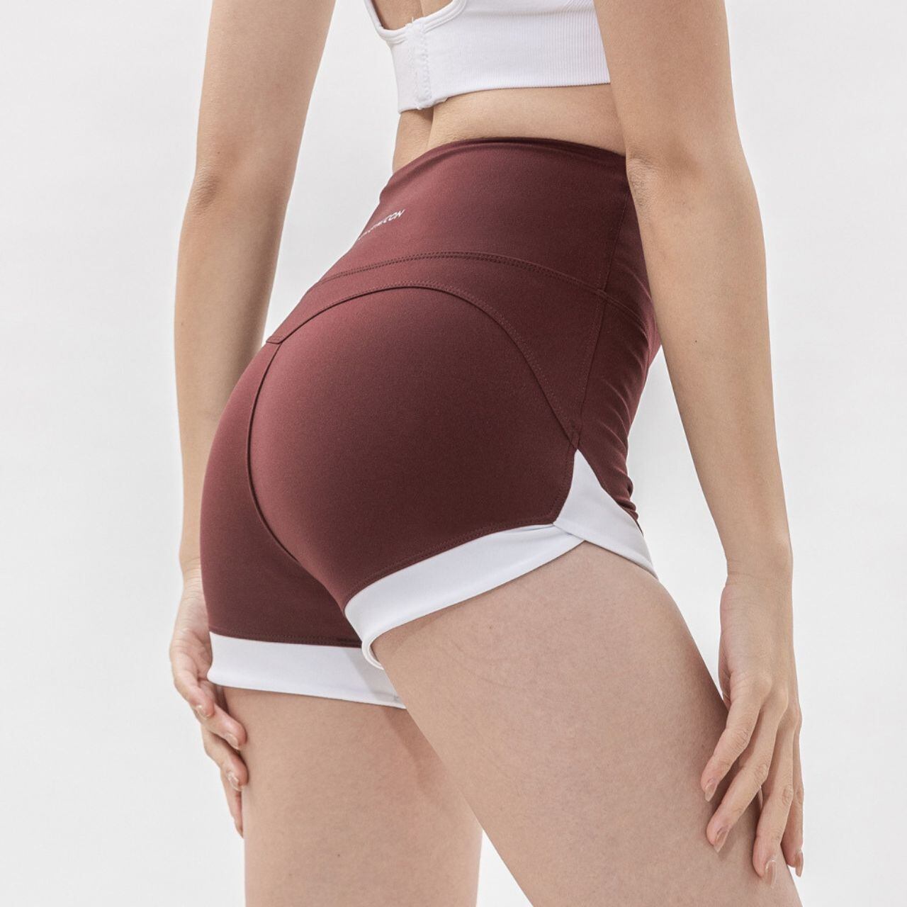 美尻×脚長を叶える夏ショート|吸汗速乾・ハイウエストスポーツヨガパンツ<暗红色:ダークレッド>